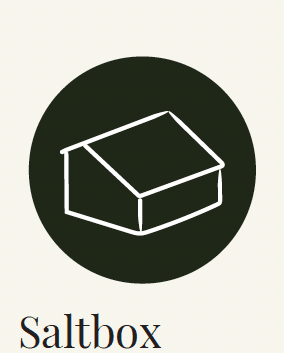 Saltbox You might recognize a “saltbox” home due to its distinctive New England roots and its characteristic asymmetrical sloping roofline, designed to expand interior space. A saltbox will typically have one story in the front and two stories in the back, lending an uneven pitch slightly more complicated to build than a traditional gable style roof. The long, sloping front is also intended to shed wind and rain, and encourage snow to melt quickly. Traditionally fireplaces were placed in the center of saltbox homes so you’ll often see chimneys protruding from the roof ridge.